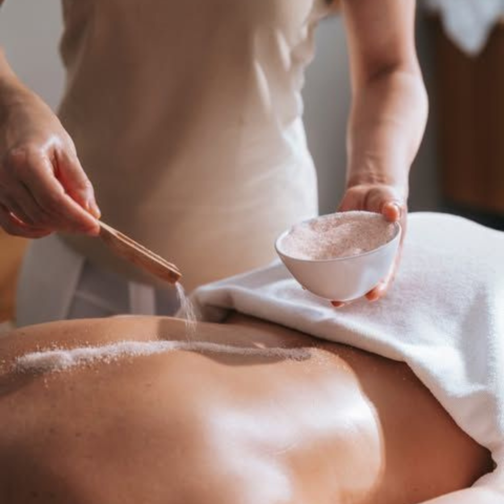 Je geniet van een lichaamspeeling, gevolgd door een modderpakking en een ontspannende lichaamsmassage met warme oosterse olie.